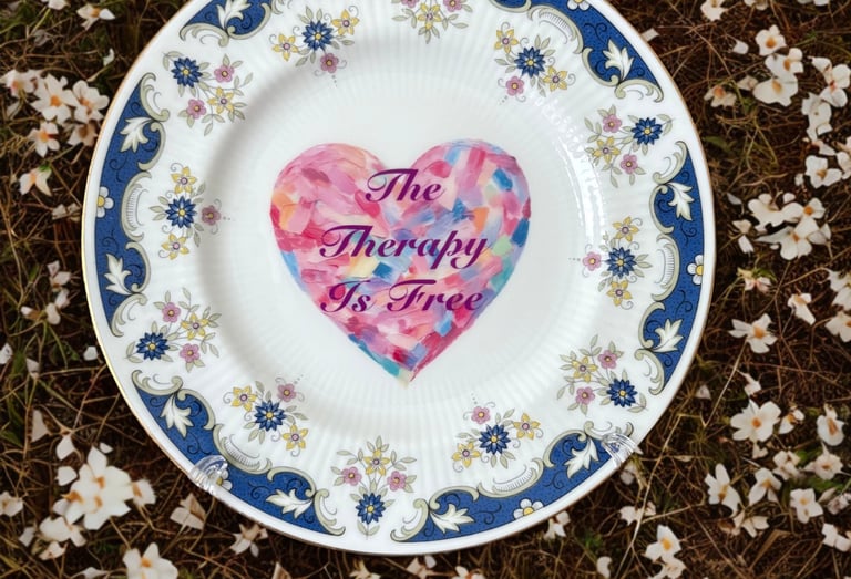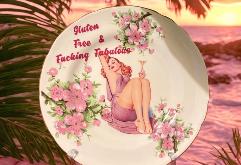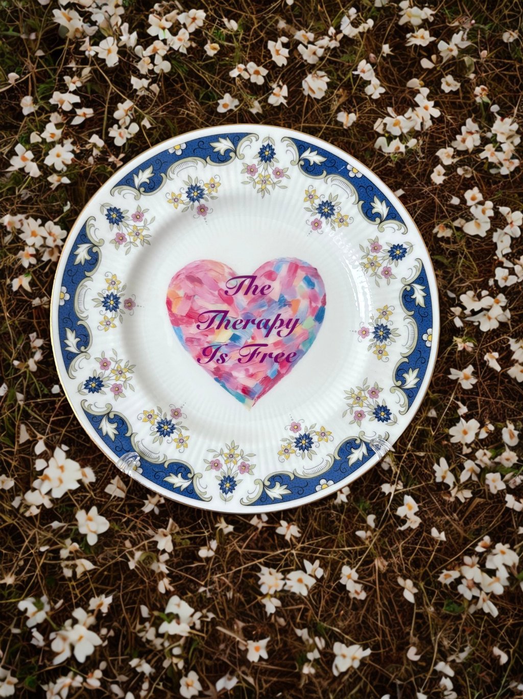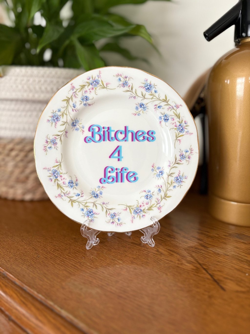 I take custom orders on 6–7 inch vintage plates — your phrase, your vibe, my hands (and occasional profanity).